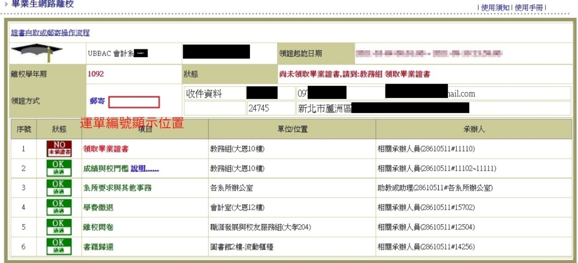 4.由於證書郵寄手續較為繁瑣且數量龐大,運單(郵件)編號預計將於五個工作日後可至系統查詢