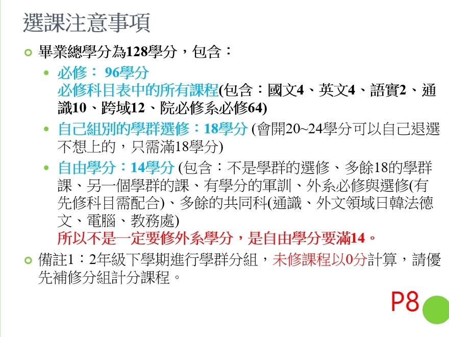 更新:重修1年級「必修課程」替代科目與3、4年級可計入學群分組課程表(補充:畢業學分承認)